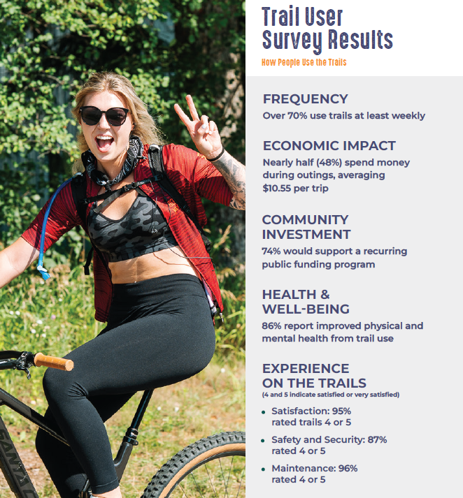 At TART Trails, we’re strengthening our focus on data to better understand and serve our communities. We’re adopting innovative tools and systems to streamline how we gather, interpret, and apply information—collecting meaningful data, using analytics to uncover trends, and integrating insights into our planning and decision-making. Through this approach, we aim to illuminate how trails enhance health, the environment, local economies, and quality of life, while regularly listening to community voices to ensure our work reflects real needs and experiences.